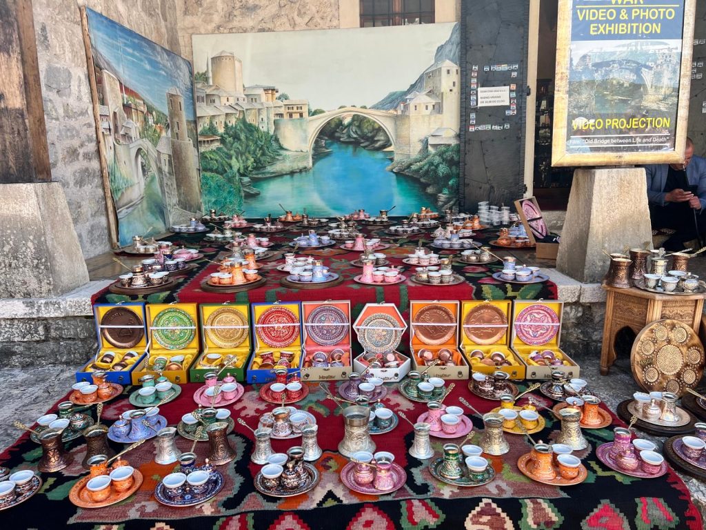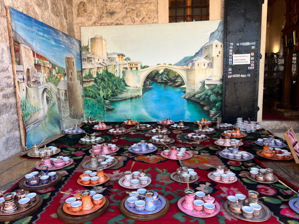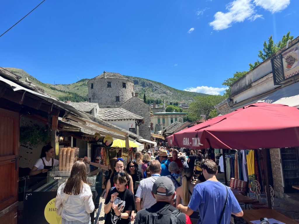 W starej części Mostaru jest mnóstwo turystów, nawet o tej porze roku, czyli w maju. Dużą niespodzianką było dla nas to, że temperatura tego dnia sięgała 30 stopni Celsjusza, co nas miło zaskoczyło. Było cieplutko i gwarno, jak byśmy przenieśli się w czasie, do jakiegoś średniowiecznego miasta. Spacerowaliśmy urzeczeni widokami starych kamienic i mnóstwem sklepików oferujących lokalne rękodzieło. Było po prostu pięknie.
