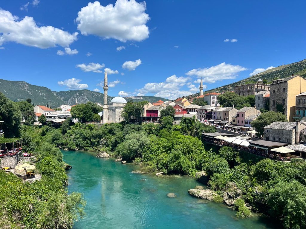 Mostar to miasto piękne i bardzo stare. Chodzi właściwie o jego najstarszą część, położoną nad rzeką Neretwa. Błękitna woda i wartki nurt, oraz zabudowania położone bezpośrednio nad wodą, stanowią nie lada wizualną gratkę. Jest tu naprawdę pięknie. Zresztą zobaczcie sami.