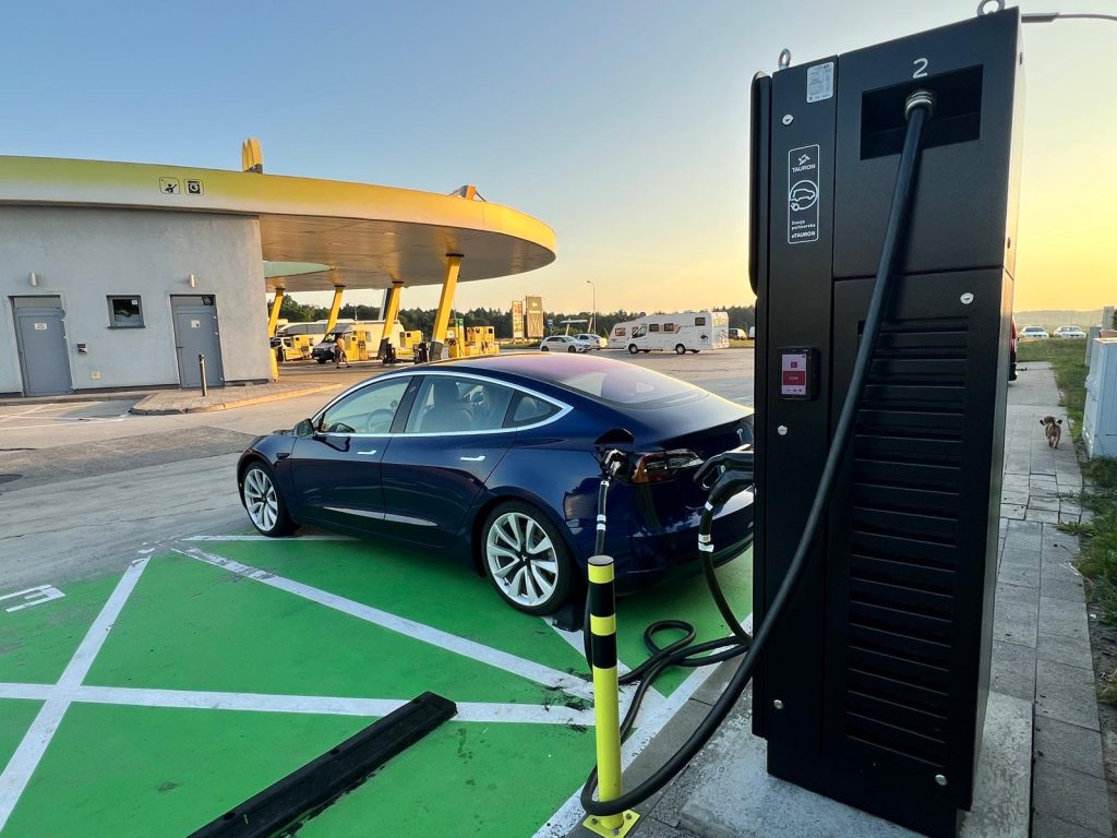 Jak zwykle jedziemy znaną nam i Wam trasą. Z Krakowa w kierunku Katowic a potem prościutko do granicy – w kierunku czeskiej Ostrawy. Naszym już stałym punktem ładowania na tej trasie, jest stacja paliw UNIWAR. To miejsce położone dosłownie o jakieś 2 km od granicy kraju. Dzięki naszemu partnerowi, firmie Elocity, to właśnie tu uzupełniamy energię w naszej Tesli, po raz ostatni w kraju. Stacja ma moc 180 kW, choć nigdy tyle nie osiągnęliśmy. Trasa przebiegała dość sprawnie, bo nasze ładowanie zaczęło się już o godzinie 5:23, więc bardzo wcześnie.
