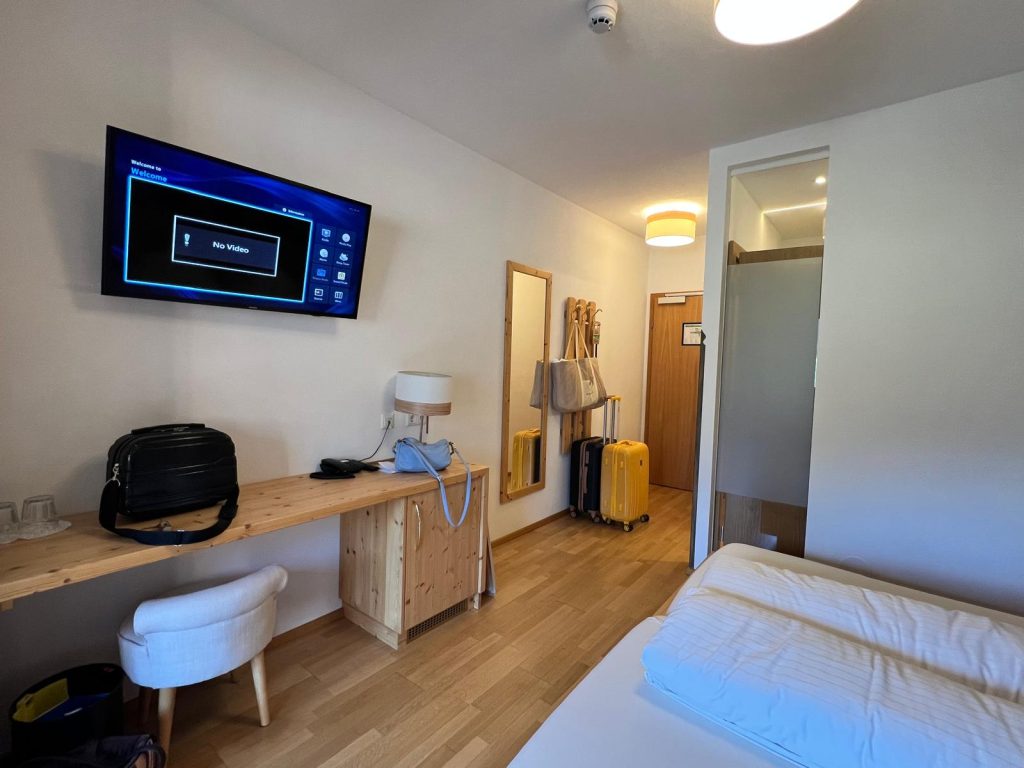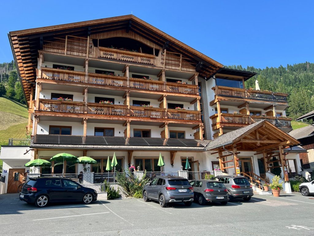 Sam hotel jest prostym lecz okazałym budynkiem w lokalnym stylu. Czysty, jak to w Austrii. Z miłą obsługą i dwoma parkingami. Jednym malutkim położonym z przodu hotelu od głównej drogi i drugim, dość dużym. Umiejscowionym z tyłu i nieco po lewej stronie hotelu. Mamy też miejsca pod dachem. Tam też znajdziemy stacje ładowania aut elektrycznych. Zarówno dla samochodów, ale również jedna z nich obsługuje rowery elektryczne. Duża lecz miła niespodzianka.