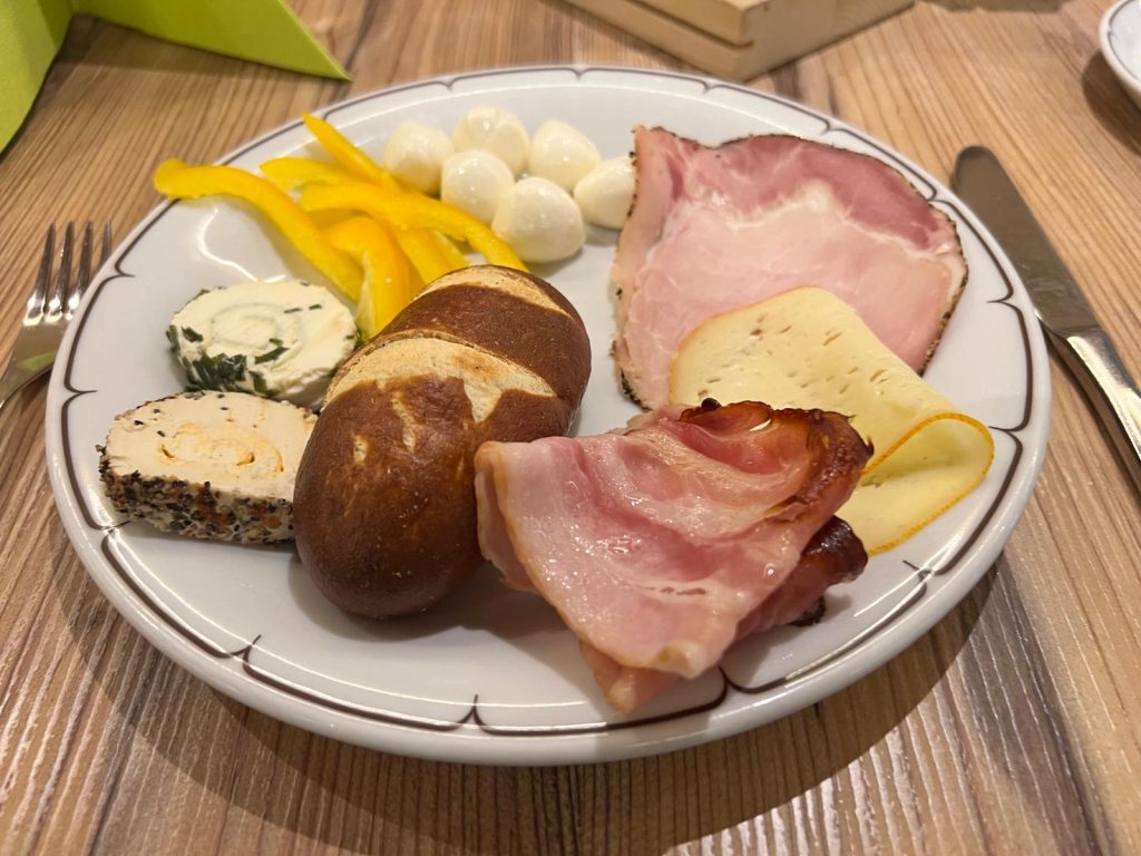 W hotelowej restauracji, czekał na nas nasz opisany stolik. A w sali głównej piętrzyły się śniadaniowe smakołyki. Wędliny, sery (naprawdę wyborne), świeże pieczywo, dżemy, płatki, kawa i wiele więcej.